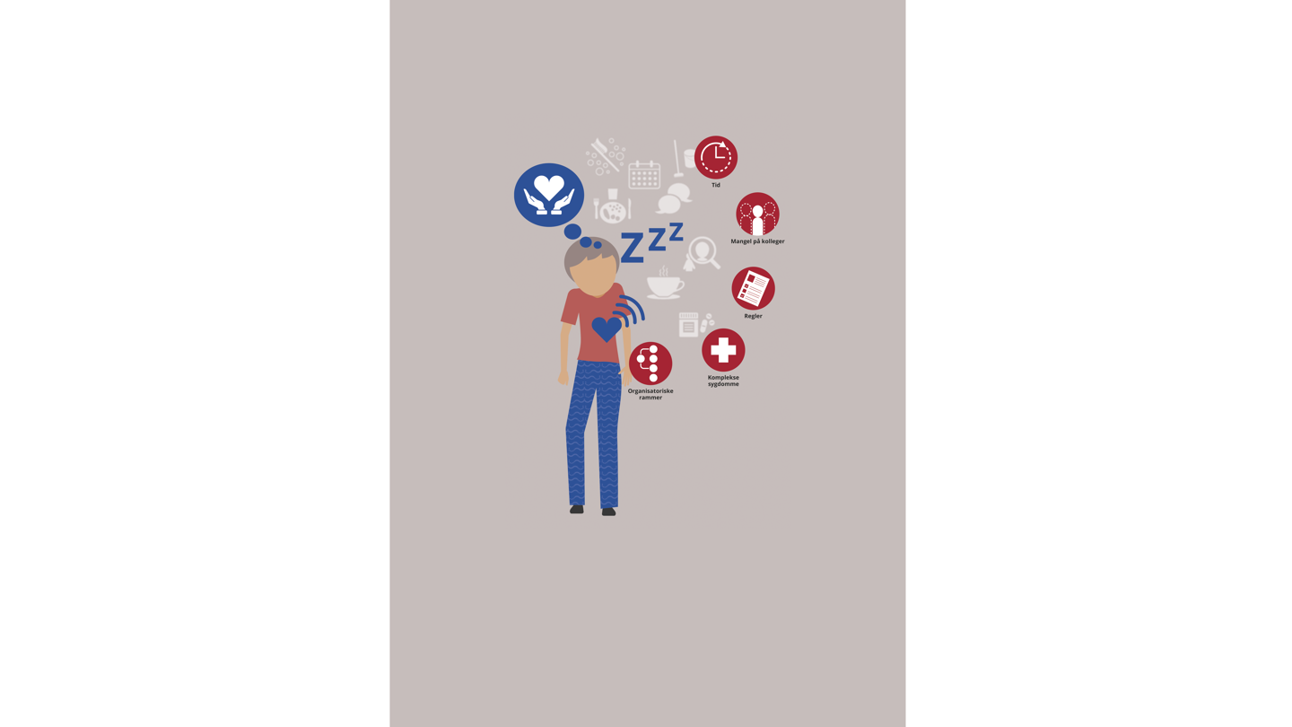 De største risikofaktorer er kombinationen af vanskelige organisatoriske rammer og arbejdsvilkår og faglige og følelsesmæssige krav i arbejdet med borgere med stadigt mere komplekse sygdomsbilleder.