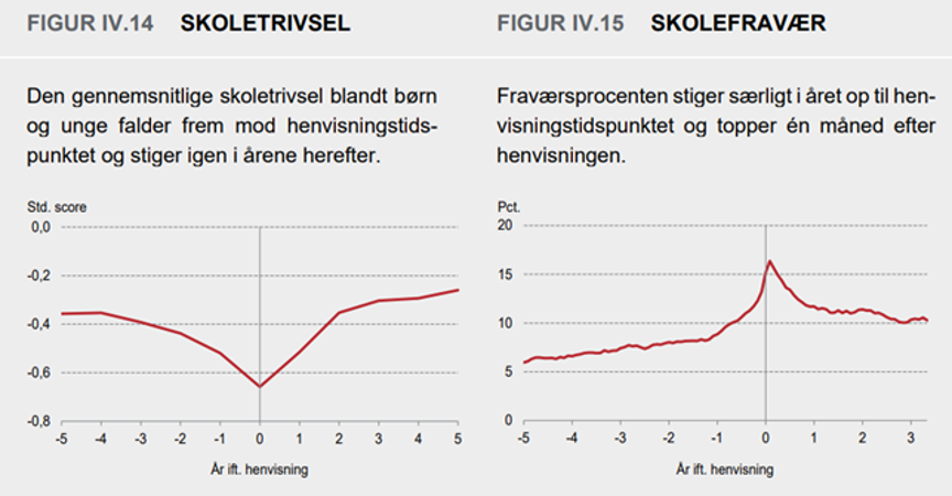 Året efter henvisningen ses der imidlertid en positiv stigning i trivslen – først tilbage til niveauet før henvisningen og derefter gradvist videre op.