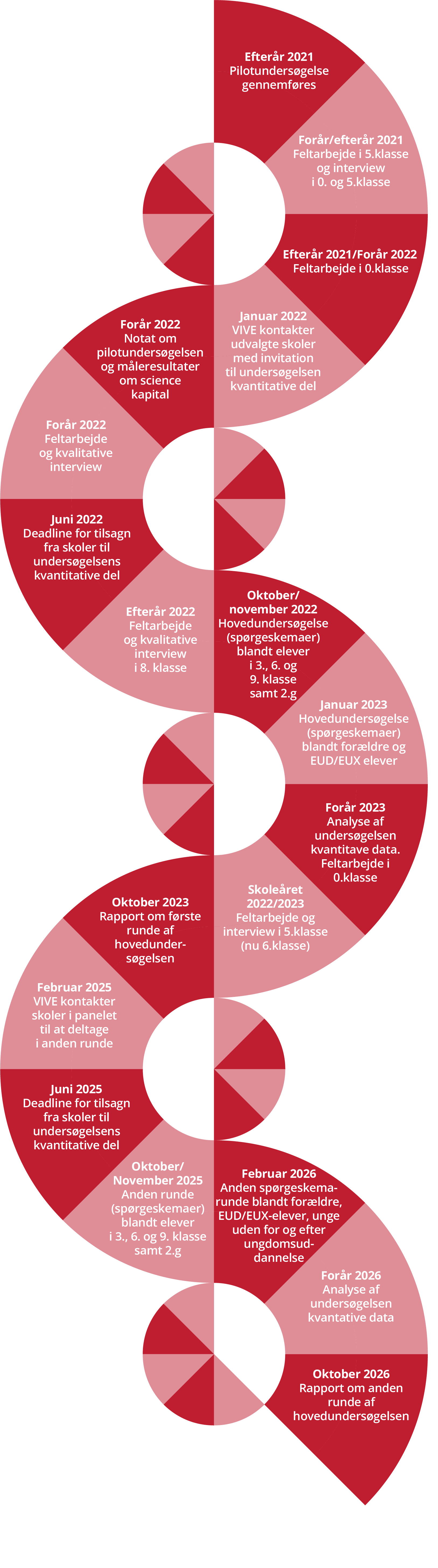 I projektperioden følger vi eleverne på ca. 100 grundskoler og ca. 40 gymnasier og alle landets erhvervsskoler. På grundskolerne følger vi eleverne i 3.-, 6.- og 9.-klasserne samt deres lærere og forældre. På gymnasier og erhvervsskoler deltager elever i 2g. eller svarende dertil. Vi følger også eleverne efter deres ungdomsuddannelse.