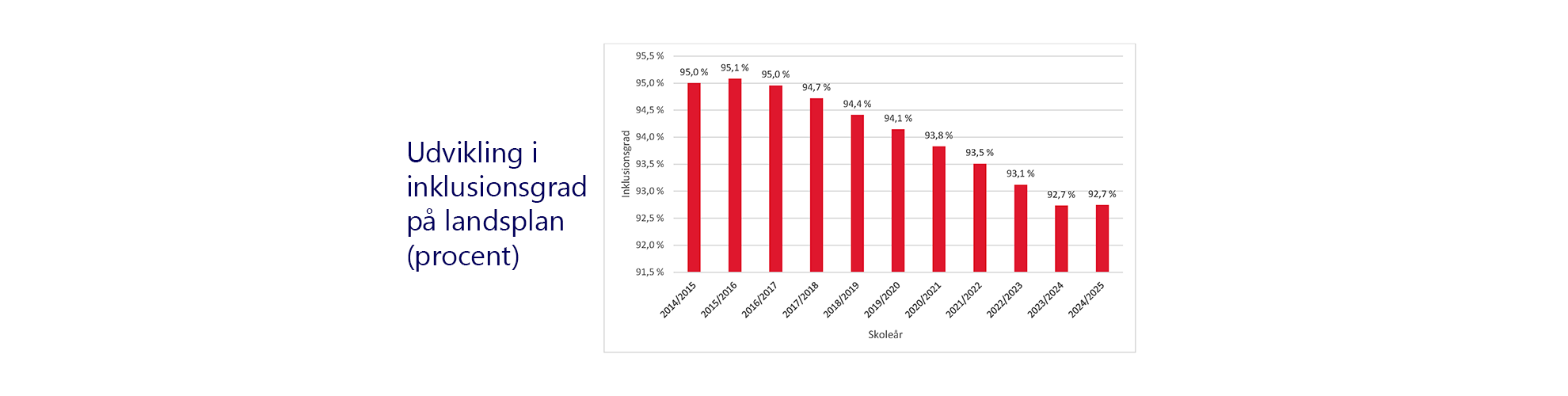 Folkeskoleloven bygger på princippet om en inkluderende skole – en skole for alle uanset faglige færdigheder og hvor børn med særlige behov ikke udskilles til særlige undervisningstilbud men undervises i den almindelige klasse med den nødvendige støtte. Folkeskolen skal samtidig også sikre faglig læring og trivsel for alle, og det er ikke nødvendigvis helt let, når undervisningen skal dække en elevgruppe med forskellige behov.